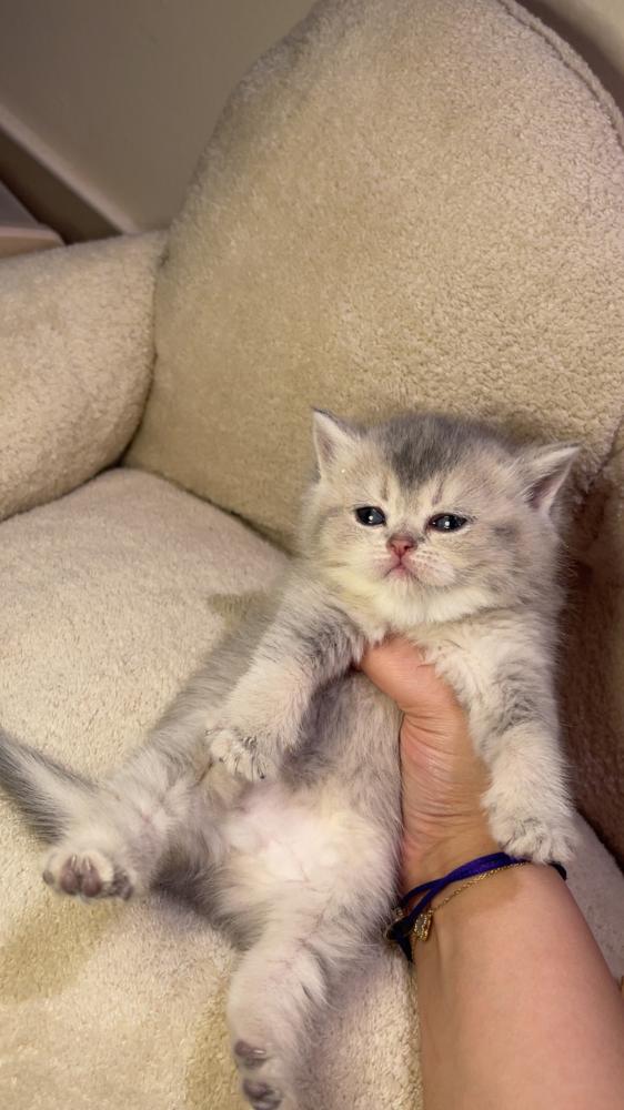 قطة سكوتش ستريت أنثى بعمر شهرين مع ضمان صحي وبكج مستلزمات كامل، متاحة في الرياض مع توصيل لجميع مناطق السعودية.